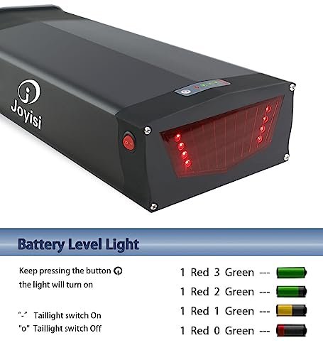 • Joyisi Ebike Battery 52V 48V 20AH Lithium ion Battery with Charger, USB Port, Rack and Taillight, Electric Bike Battery for 1000W Bike Motor Kit