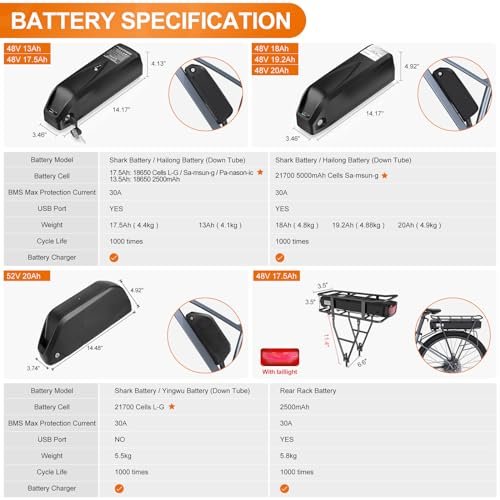 • 36V 48V 21Ah Reention Dorado Max Ebike Battery Pack Compatible for NCM Electric Bike Removable Lithium Batteries wih USB Port (36V 21Ah)