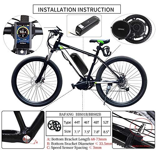 • BAFANG 48V 500W Mid Drive Kits with Battery,48V Mid Drive Ebike Conversion Kit with Chainring and Ebike Display&Battery,Electric Bicycle Upgraded Kit Fit 68-73MM BB Size Mountain Bikes,City Bike