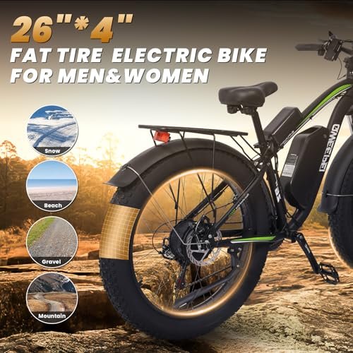 • 1000W Electric Bike Adults, 48V 20Ah LG Cells Battery, 26”x4.0 Inch Fat Tire Ebike, 30MPH Dual Hydraulic Disc Brakes Full Suspension E Bike, 80Miles Off Road Mountain Ebikes for Men Women