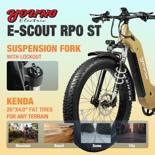 • E-Scout PRO, Hunting 750W (Peak 1000W) Young Electric Bike for Adults, 48V/20Ah Battery 3A Fast Charger, Up to 80Mi 28MPH, 26”x4.0” Fat Tire Mountain Snow Beach Off-Road Ebike