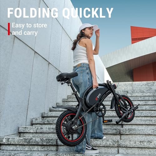• DYU Electric Bike for Adults Teens, D3F 14 in Folding Electric Bicycle,Commuter City E-Bike with 250W Motor and 36V 10AH Lithium-Ion Battery,40-45 Miles Travel Range