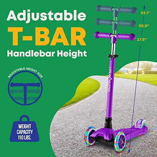 • Kids Scooter – Children and Toddler 3 Wheel Kick Scooter – LED Wheel Lights Illuminate When Rolling Lifemaster