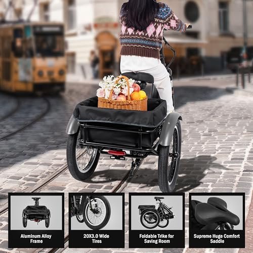 • Triker Electric Bike, Peak 750W Brushless Motor Folding Trike Ebike, 720Wh Removable Battery, Step-Thru 3 Wheel Electric Bicycle, Up to 65 Miles, 20X3.0 Tire Tricycle for Adults