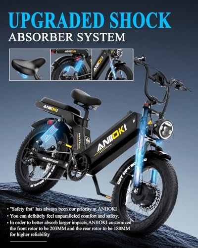 • ANIIOKI eBike,AQ177 PRO MAX Electric Bike,48/52V 60Ah Electric Commuting Bike,200Miles Long Range, Peak 1200W Power Ebike, Electric Bicycle for Adults