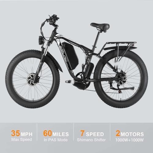 • 2000W Dual Motor Electric Bike, 48V 20Ah Removable Battery, 35MPH Ebike for Men Women, 21-Speed, 26″ Fat Tires Electric Bicycle with Hydraulic Disc Brakes & Lockable Suspension