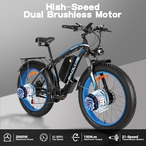 • 2000W Dual Motor Electric Bike for Adults, 21-Speed AWD Ebike, 35MPH 48V 22.4Ah Fat Tire Mountain E Bikes for Hunting, 26” Hydraulic Disc Brake Adult Electric Bicycles for Men & Women