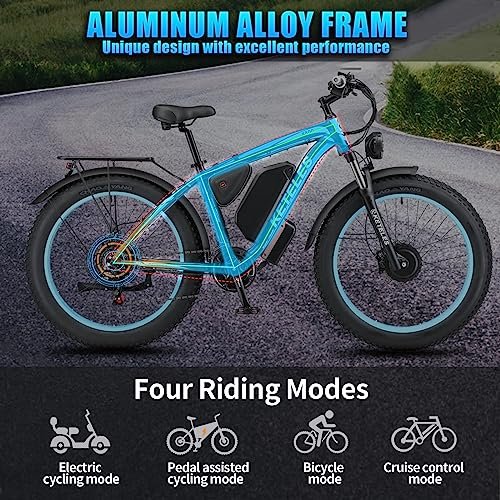 2000W Dual Motor Electric Bike for Adults-30MPH Ebike with 26″ x 4″ Fat Tire48V23Ah Removable Battery,and 7Speed Hydraulic Disc Brake, All-Terrain E-Bike for Off-Road Mountain and Snow。