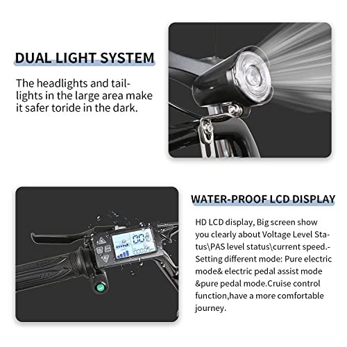 • NAKTO 22″/26″ Electric Bike for Adults 250W/350W City-Electric Bike Sporting 6-Speed Gear Electric Bicycles 36V 10.4/12Ah Removable Lithium Battery Ebike for Female Male