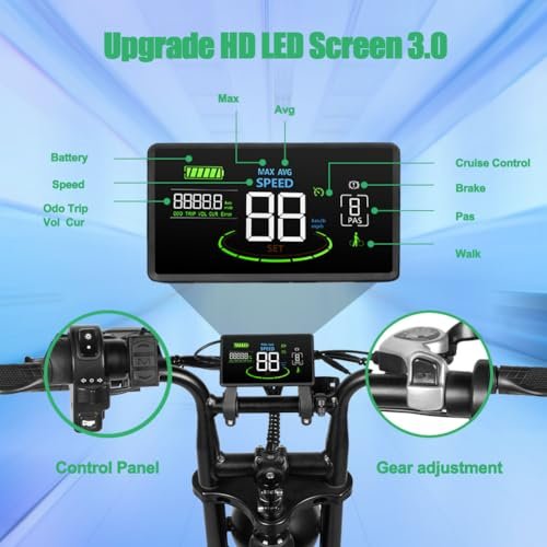 • V20 3.0 Ebike 1000W-1500W Brushless Motor, 48V/15Ah Lithium Battery, 20″ x4.0 Fat Tire Electric Bike, Snow, Road, Mountain Electric Bicycle