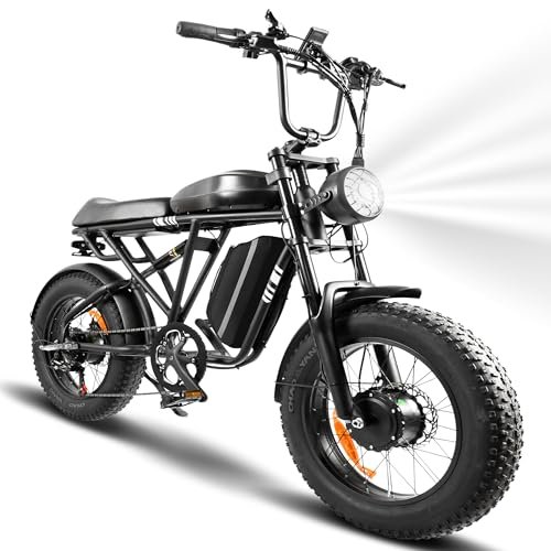 • Updated 2000W Electric Bicycles for Adults with 20Ah 48VRemovable Battery 34MPH 50-80Miles Electric Mountain Bike with 7 Speed Hydraulic Disc Brake 20″×4.0 Fat Tire Ebike-Black