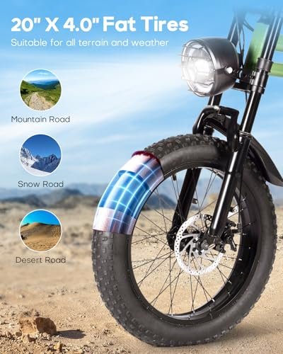 • V20 3.0 Ebike 1000W Brushless Motor, 48V/15Ah Lithium Battery, 20″ x4.0 Fat Tire, Snow, Road, Mountain Adventure Electric Bicycle