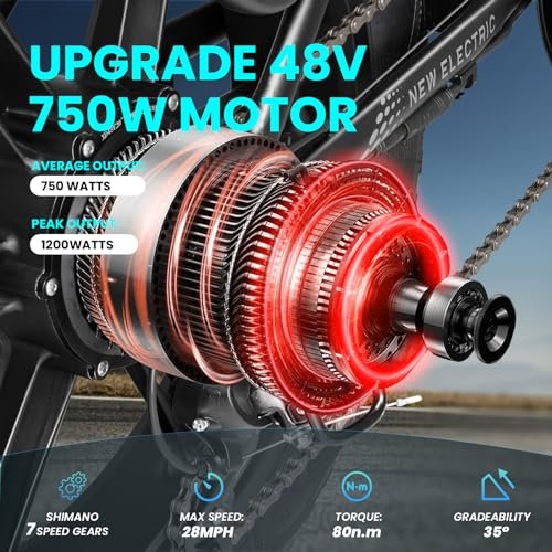 • V8 Electric Bike Adults, Fat Tire E Bike with 750W Brushless Motor 48V 15Ah Removable Larger Battery, 20″ x 4.0 Electric Mountain Bike, 31MPH Max Speed, Shi-mano 7 Speed Adult Electric Bicycles