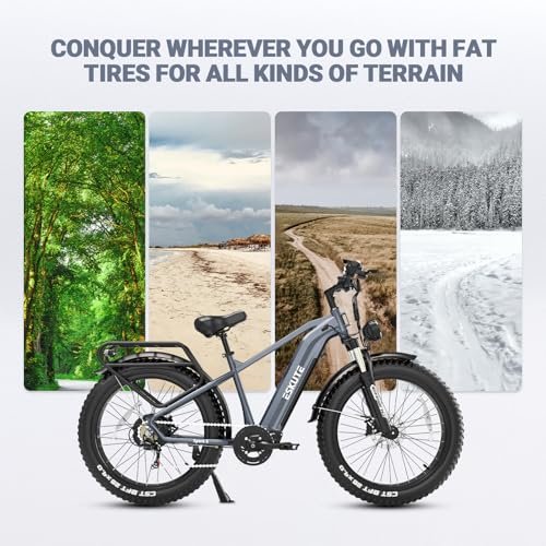 • ESKUTE E Bikes for Adults Electric 750W (1500W Peak) Power, Spark X Electric Bicycles 48V 20AH Battery 26 Fat Tire Electric Bike 28Mph 70 Miles Range 7 Speed Hydraulic Disc Brakes