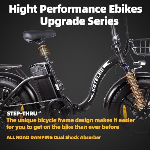 Folding Electric Bike for Adults with 500W Motor (Peak 720W),20″ 4.0 Fat Tire Ebike,48V 13Ah Removable Battery UL 2849 Certified, Adults Electric Bicycles E-Bike,7-Speed and Front Suspension