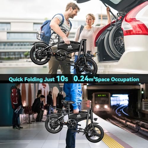 Folding Electric Bike for Adults, 500W Peak Motor, 14″ Adults Electric Bicycles, 280.8Wh Battery, 25 Miles PAS Range, Mini E Bike for Adults and Teens, Ebike UL 2849 Certified, 3 Levels Assist