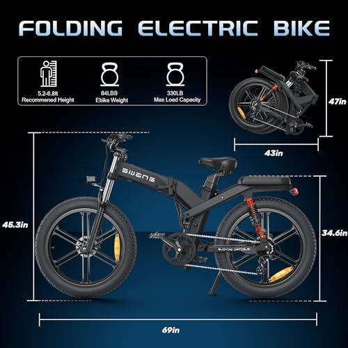 • Folding Electric Bike for Adults,48V 29.2Ah Dual Batteries,1000W 31 MPH 93.2 Miles Max Range 8-Speed Adult Electric Bicycles,26” Fat Tire Electric Mountain Bike with Triple Suspension