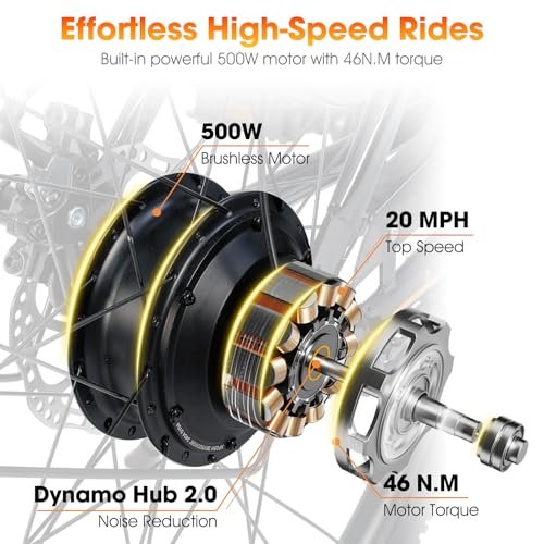 • HILAND Electric Bikes for Men Women, 26 Inch Ebikes for Adults 350/500W, Front Suspension, 36V Portable Lithium Battery, 20 MPH, Up to 50 Miles, Bicycle Electric Commuter Cruiser