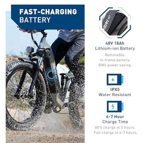 • Hiboy EX7 Electric Bike for Adults, 28MPH 75Miles Range 1000W Peak Motor 48V 18AH Removable Battery Ebike, 26” x 4.0″ Fat Tire Electric Mountain Bicycle, 7 Speed, Dual Suspension, UL 2849 Certified