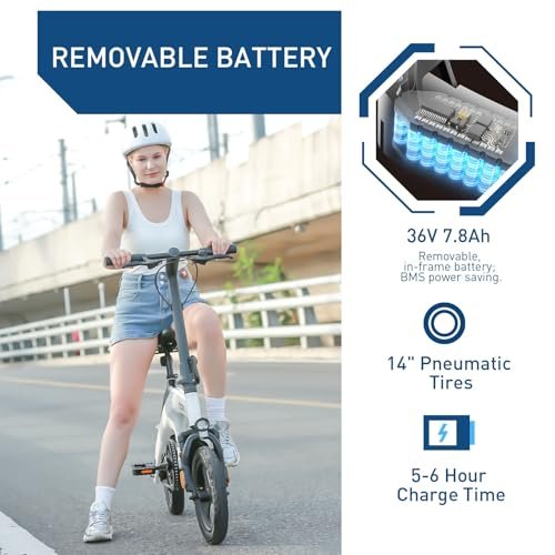 • Hiboy C1 Electric Bike for Adults, Max 20MPH Speed & 43.5 Miles Range(PAS), 500W Peak Motor and Removable Battery, Front Suspension Electric Bicycle, 14″ Foldable ebike for Adults and Teens