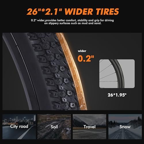 • Racer Electric Bike for Adults – 21-Speed Mountain Lightweight Ebike with Peak 500W Brushless Motor, 375Wh Removable Battery, 26X2.1 Tire Step Over E-MTB, Up to 40 Miles