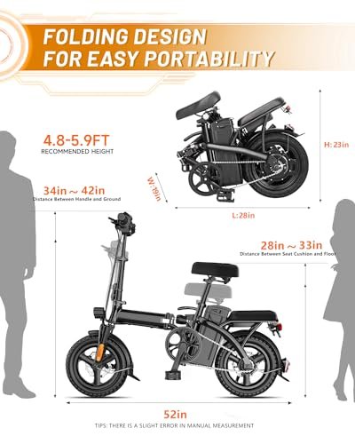 • Electric Bike for Adults, Ebike,14″ Folding Electric Bike 350W 36V 12Ah Built-in Battery 20MPH,20+Miles,3 Riding Modes, Commuting