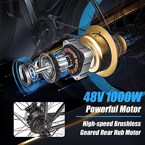 1000W/2000W Electric Bike for Adults Electric Bicycle Electric Mountain Bike with 48V 17.5AH/23AH Removable Battery 26″ Fat Tire Ebike 21-Speed Gears Hydraulic Disc Brake Electric City Bike