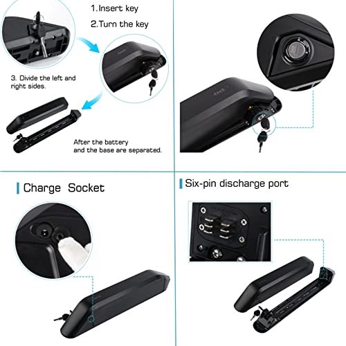 [Product Information] The outer layer of this battery has very good insulation and wear resistance, the battery is 52V 17.5Ah/48V 17.5Ah, the size is 526*77*104mm, suitable for electric bicycle, and we will give you a 54.6V/58.8V charger. [High-end quality] The battery consists of 70 automotive grade A+ cells, the battery quality is more excellent! The battery is equipped with BMS, which is to prevent battery overcharge, deep discharge and overcurrent.BMS provides safe and reliable operation of your Li-ion battery, providing you with a safer charging environment. [Safety Test] Every battery has passed the appearance and function test before leaving the factory, fully guaranteeing the safety of the battery. With long charging cycle and long service life, you can use this battery with complete confidence. [Detail Show] The battery is designed with a variety of intelligent protection functions, with key lock, easy to disassemble, also can firmly lock the battery on the bike frame to prevent the battery from being stolen; LED power indicator of the battery with light, notifying you to charge the battery on time, providing more convenience for your travel. [After-sales service] If you have any questions, please contact us as soon as possible, we can provide you with professional advice and patiently answer all your questions. We always face every buyer with 100% enthusiasm, so that buyers are satisfied with our products and services. Battery type: lithium battery Rated voltage: 48V/52V Rated capacity: 17.5Ah Battery size: 526*77*104mm Maximum constant discharge current: 30A (BMS) Battery charging voltage: 54.6V/58.8V Charger: 3A charger Charging port: DC Discharge connection: 6Pin LED indicator: 4 LEDs Base: with Purchase instructions. 1. After receiving the battery, please fill it up. 2. If not used for a long time, please charge it once every three months. 3. Operating temperature: charging 0-45 , discharging -20-60 , storage temperature -20-45 . 4. Do not use the battery in high temperature environment and keep away from water. 5. Due to manual measurement, there may be 1-10mm error.