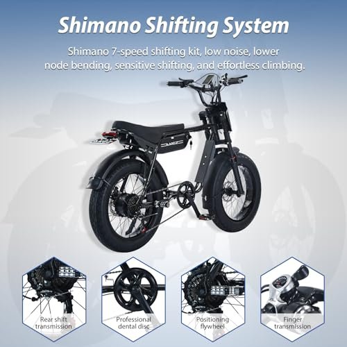 Unique Off-Road Electric Bicycle This adult electric bicycle adopts a unique off-road design and is equipped with a high-brightness bicycle headlight, which has the best safety when riding at night. The rear pedals and the extended seat cushion that can carry people are built with high-elastic memory foam, which is comfortable and breathable. The frame is made of high-carbon steel and has a three-layer paint process, which is waterproof and anti-corrosion. Rear High-Speed Motor This electric bike is ideal for daily commuting and mountain adventures. Equipped with a 750W peak high-performance rear brushless motor, the maximum speed can reach 28 miles per hour. Whether you are commuting on city roads or exploring rugged mountains, you can easily conquer various terrains. From bumpy mountain roads to rugged trails, this electric off-road bike can give you confidence and let you enjoy the ultimate fun and freedom while being healthy. Removable Battery This electric bike is equipped with an upgraded removable large battery with a capacity of 48V 13Ah / 624WH. This battery can not only be quickly charged within 6-8 hours, minimizing your waiting time, but also has a longer service life to ensure your long-term riding needs. A full charge allows you to travel 25-45 miles (Note: in pedal assist mode), which is enough to meet your daily commuting or off-road play needs. Multiple Riding Modes You can experience different riding styles through 3 optional riding modes (pedal assist mode, full electric mode, foot pedal mode) and 7 speed options. The maximum speed can reach 28 miles per hour, and the battery life can reach 25-50 miles, ensuring that you are no longer limited by distance and speed during riding. Whether it is long-distance riding or mountain off-road, you can rest assured and make riding more free and comfortable. All-terrain Fat Tire Off-road This electric bike is equipped with all-terrain fat tires with a size of 20 4.0 , which have excellent puncture resistance, allowing you to enjoy stable grip in various harsh terrains. In addition, the upgraded brakes provide you with greater braking force and more precise instant braking response. Whether facing sharp turns, downhill or other unexpected situations, you can stay stable and safe. Easy to Assemble & After-Sales Service The e-bike you receive is 85% assembled, and with detailed instructions and installation tools, you can easily complete the installation. We will provide different years of repair for different bicycle parts. If the adult electric bike is damaged or malfunctions, please contact us according to your order and send us relevant photos and videos of the problem.