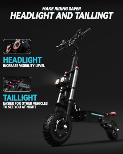 BUY SCOOTERS TO GET BUNDLE 109.97USD T88PLUS electric scooter adults features a Heavy-Duty Chain Lock for anti-theft and added security, a High-Quality Phone Holder to fix your phone while riding, 3L Travel Bag to take small things for convenience. Buy now and get these valuable accessories included! 5600W DUAL MOTOR ELECTRIC SCOOTER T88PLUS scooter for adults is equipped with 2 powerful 2600W motors, total 5600W. The maximum speed can reach 50MPH when dual drives are running at the same time. Cross 45 grade hill easily when front and rear dual motors drive. SUPER UPGRADED BATTERY T88PLUS adult electric scooter uses 60V33AH (1980WH) lithium battery, making this off-road electric scooter travel up to 60 miles per charge, with longer riding distance and longer service life. The whole aluminum alloy body accommodates a maximum load of 550 lbs. DUAL BRAKING & SUSPENSION SYSTEMS T88PLUS electric scooter with a seat is equipped with oil brakes for both front and rear wheels, enabling rapid deceleration and short stopping distances. Coupled with front, and rear shock absorbers, two large 11 off-road tires ensure maximum safety and comfort on any terrain. REMOVABLE SEAT & FOLDABLE DESIGN SAVE SPACE The detachable seat kit for the T88PLUS electric scooter ensures a seamless transition between off-road adventures and daily commutes. The foldable design makes it convenient to fit in the pickup truck s trunk, and when not in use, folding it saves more space. SAFER RIDING AT NIGHT T88PLUS electric scooter with seat is upgraded with a dual headlight system. Dual headlights can make the irradiation range wider and the irradiation distance farther. In addition, the scooter is equipped with 5-color LED side lights and a tail turn signal function. The colored ambient lights during the ride add a cooler and more dynamic vibe. RELIABLE SUPPORT We are ready to assist you with any inquiries or concerns including 180-day parts replacement service. Rest assured, your satisfaction is our priority.