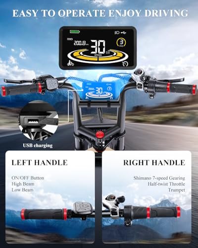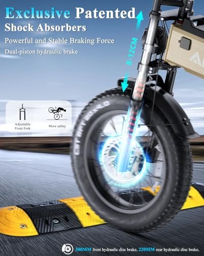 Wild 52V 60AH Ebike Power Back Experience the allure of intelligent technology and make your travel even more convenient. Our electric bikes are equipped with a detachable 52V 60AH automotive-grade lithium battery. Don t worry about the charging time due to the large battery capacity, as our fast charging adapter can quickly inject new energy into the electric bike in just 7-8 hrs. Let our ebike support your journey and bring you the convenience you deserve. Dominate Any Terrain with a 1200W rated output Motor Crafted with precision engineering, the peak power of the motor up to 1600W, providing a robust and efficient ride. Twist the e bike throttle and feel the thrill of speed and acceleration with a top speed of 30+MPH. The torque of 90N.M allows you to easily conquer rugged roads and climb hills. Select from several riding modes, including pedal-assist, throttle-only, cruise control, and walk boost mode, and enjoy a smooth and seamless ride. Thick Brake Disc for Enhance Safety Enjoy unparalleled stopping power with the advanced disc brakes of our electric bike for adults. With a 180mm diameter and a 3mm thickness, the disc brake is larger and thicker than most standard disc brake rotors, provding exceptional heat dissipation and sensitivity. Easily cut power by pressing lightly and stop instantly, allowing for rapid response times and reliable performance even in challenging conditions. Responsive Bike Suspension The ebikes for adults feature hydraulic front forks and rear shock absorbers with thickened coils, providing a rapid response to changes in road conditions, offering you better control of your electric bicycle. It also smoothly absorbs the impact of road bumps, making your ride more comfortable while protecting you and your bike. Let it become your loyal partner on your ride, providing you with the optimal protection for your safety and comfort. Innovative e-bike Frame Design The e bike for adults is the perfect combination of motorcycle DNA and cutting-edge technology. Its independently developed frame is made of premium aluminum alloy, providing unparalleled stability, durability, and shock resistance. The seat is designed for long-distance rides, offering both style and comfort. Whether you re exploring the city, wilderness, desert, or road, you can enjoy the fun of riding and make exploring a part of your lifestyle. Grip the Road The equipped 20 x4.0 tire that resists deformation, ensuring stability on uneven terrain. Its highly elastic rubber material and anti-skid pattern design provide excellent grip and gravel protection. With the ability to withstand impact and bumps, our adults electric bicycles offer a smooth ride. In addition, the tire has increased its drainage space by 50%, improving the fat tire electric bike s handling and safety on rainy or slippery road. User-friendly The electric mountain bike equips with twist throttle, which offers a more effortless, responsive, and more precise speed adjustments compared to press-throttles, helping you easier to navigate around obstacles and improve safety by avoiding potential accidents. It can also help to avoid discomfort in the thumb caused by the press-throttles. The adult electric bike also includes a smart key that emits a loud sound when pressed, making it easy to locate your bike quickly. We are committed to ensuring your satisfaction with our product by providing timely and courteous assistance whenever needed. As a friendly reminder, we recommend keeping the original packaging box of the e-bike to facilitate possible returns. :We have obtained the UL2849 certification, and our products undergo strict production processes and quality inspections to ensure customer satisfaction and peace of mind.