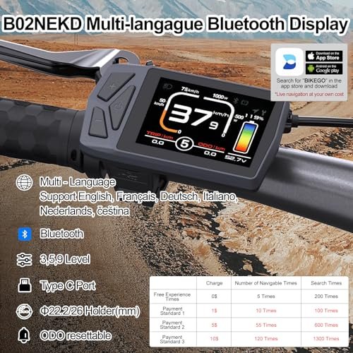 Wide Compatiblity Fits standard JIS 68-73MM bottom brackets and inner diameters of 34-36MM. Pay attention to the installation diagram; you can also download and print the compatibility diagram from the product page. It s not recommended to install this kits on bikes with carbon fiber frames. It only fits Drive Chain Systems, Disc Brakes, and V Brakes Battery Parameter 52V 20Ah Yingwu Battery, charger: 3A DC 58.8V. Equipped with a 30A BMS Protection Board. Please ensure the security lock is engaged before pressing the power button to prevent battery theft. The batt-ery can be recharged 800-1000 times (depending on usage and storage environment). Do not ride in the rain or store it in a high-temperature environment EKD01 bluetooth multi-langague newest display with 2.4inch screen, provides 4 themes and 6 languages(English, Fran ais, Deutsch, Italiano, Nederlands, e tina) for users to set up. Type C charging port. ODO is resettable compared to other displays. Download BIKEGO APP on App store, scan the QR code through the mobile APP to bind the device. Bluetooth function provides real-time synchronization time, current hint and distances,etc. Notice that Live navigation requires payment Easy Installation It can be easily disassembled and installed with a few tools, allowing you to successfully install the mid-Kits on an electric bicycle in a short time. You can check the installation video on the product page or on social media Complete Accessories All necessary mounting accessories are included in the parcel. We send mechanical brake levers and a 46T chainring without a chain guard as the default. If you need hydraulic sensors or a different chainring, please leave a message specifying your requirements Attention Please Always check local regulations and safety guidelines when using an e-bike conversion kit. We offer after-sales service in the United States, with 24-hour online support