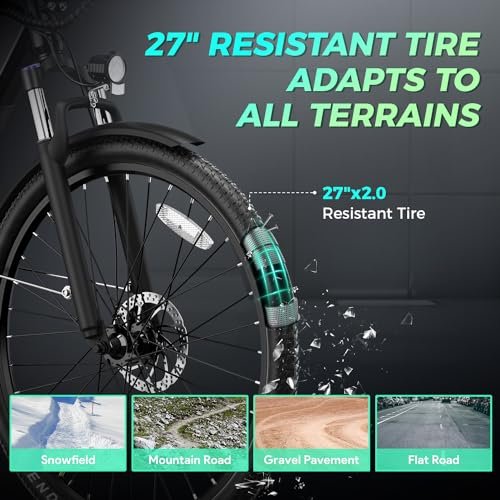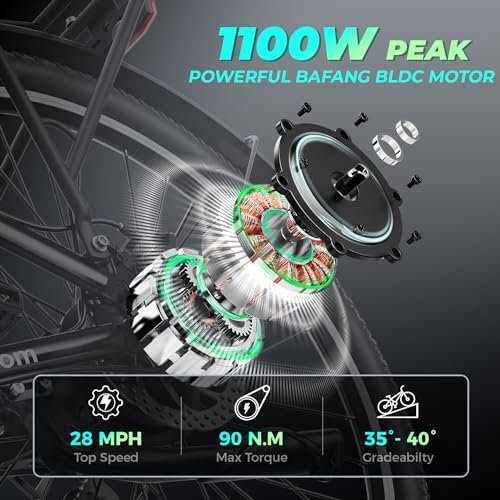 C2 Electric Bike Adults, 1100W BAFANG BLDC Motor & 48V 499WH BatteryAdult Electric Bike, 27″‘ Fat Tire Electric Bike, 28MPH, 7-Speed, 60Miles Range with Charging Port with Pannier Bag