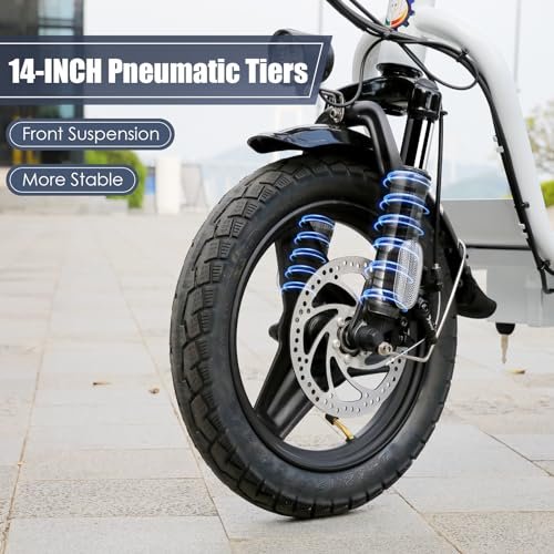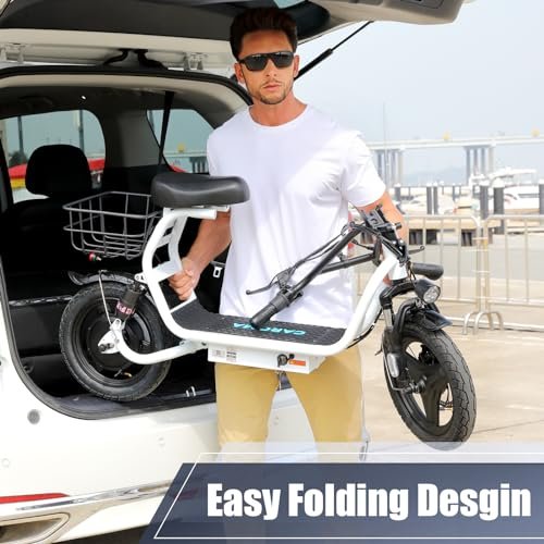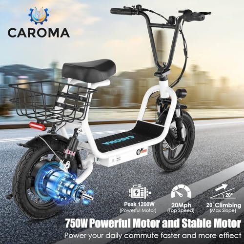 Peak 1200W Motor & 500Wh Battery : Caroma P5 electric scooter is powered by a robust 750W(peak 1200W) motor, reaching top speeds of 20 mph and handling 20% hill grades with ease. Its high-capacity 500Wh lithium battery, enhanced by regenerative braking, provides a remarkable range of up to 30 miles. Perfect for commuting or leisure rides, this adult electric scooter offers unparalleled versatility and high performance. Dual Shock Absorption & Large 14 Tires The adult electric scooter features multiple shock absorption , including front and rear shock absorber and soft wide seat, significantly reducing discomfort. Its 14 pneumatic tires provide excellent grip, high elasticity, and wear resistance. The extra-wide deck makes long rides enjoyable and effortless. Portable and Durable Travel Partner : Equipped with foldable handlebar, the e scooter can be easily stored and carried in your trunk, you can ride it anytime you like. The aluminum frame of this electric scooter is strong and durable, which can support a maximum weight of 300 pounds. The large capacity basket is prefect for shopping trips and short errands around the block. LCD Display & Safe to Ride : The LCD monitor shows the battery level of the e scooter, so you can get a clear picture of your riding. The effective front and rear disc brake on the e-scooters provide excellent stability and control. The high-brightness headlight and rear brake light keep your riding safe at night. Easy Assembly & After Sales Service : This electric scooter is UL 2272 certified. Only the seat and the basket attachment needed to be assembled after the 2 wheel electric scooter for adults arrives. We provide a 12-month warranty for the E scooter. If you encounter problems using the product, please refer to the manual. If the problem cannot be solved, feel free to contact our customer service. Product Specification: Material: Aluminum Color: Black, Gray, Silver, White Dimension: 124 x 23 x 60cm Wheel Diameter: 14inch Weight Capacity: 265lbs Max Speed: 20MPH Range: 25 miles Power: 500W peak 819 W Battery: 48V Lithium Battery Input Voltage: AC110-240V Charge Time: 4 Hours Plug Type: US Plug Weight: 25.6kg Package Content: 1 x Electric Scooter, 1 x Power Adaper, 1 x USB Charging Cable, 1 x Wrench, 1 x User Manual