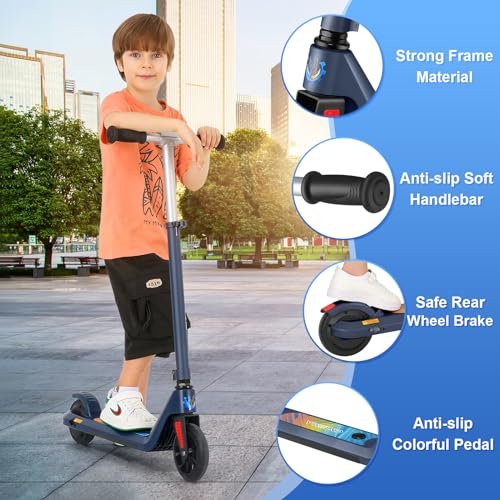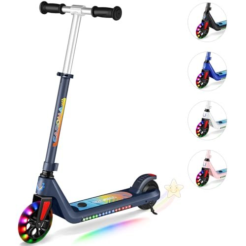 Colorful LED Lights & Light-Up Wheels: Designed with kids in mind, the Caroma electric scooter for kids features flashing rainbow LED lights next to the pedals and durable PU light-up front wheels. These lights add a fun and stylish element while also improving visibility for safer rides, especially at night. This kids electric scooter combines safety and style, making it a great choice for young riders Enjoy Safe Riding: Safety is our top priority. The Caroma electric scooter for kids features a Non-Zero Start function to prevent accidental starts; the motor activates only when the speed reaches 1.8 mph. The non-slip rubber handle offers a comfortable and sturdy grip, while the rear fender brake ensures quick and safe stops. All the Caroma kids electric scooter has passed UL 2272 certification, ensuring greater safety for children. 4 Adjustable Heights & 2 Speed Modes: This electric scooter for kids ages 6-8 is designed to grow with your child. The handlebar adjusts to 4 different heights: 26 , 28 , 30 , and 36 , ensuring a perfect fit as they grow. With two-speed options, your child can choose between a relaxed ride at 4 mph or a quicker pace at 8 mph. Suitable for kids aged 6-10 and up to 110 lbs, this scooter for kids offers a comfortable and personalized riding experience. Upgraded Powerful Motor & Extended Fun Time: The electric scooter kids 6-8 is equipped with a robust 120W motor, ensuring smooth and reliable rides. With a long-lasting battery that provides up to 80 minutes of continuous playtime on a single charge, your child can enjoy extended fun without frequent recharging. Ideal for longer adventures and play sessions, this kids electric scooter combines performance and endurance, keeping the excitement going for your young rider. Quality Gifts & Excellent After-Sales Service: Perfect for summer fun, Christmas, birthdays, or any special occasion, this electric scooter for kids promises endless family enjoyment. Our e scooter kids comes with a one-year warranty on main components and a 180-day warranty on other parts, giving you peace of mind with your purchase. Additionally, our dedicated customer service team is available 24/7 to address any questions or concerns, ensuring a smooth and worry-free experience.