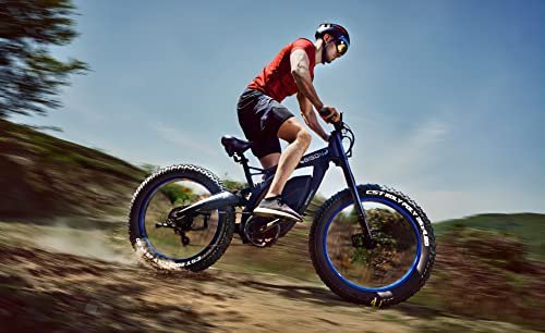 TOP RIDING CONFIGURATION Aluminum MTB suspension frame with Double suspension fork & shock absorbing fat tire maximize riding comfort & control performance.The suspension doesn t bob when you stomp on the pedals, yet becomes extremely plush the moment your wheels start smacking roots and rocks. TOP MOTOR & BATTERY CONFIGURATION Brushless gear 1000W Motor provides 42Km/h(26.1mph) maximum speed. 48V 17.6AH high quality Li-Lion cell & energy saving motor can get 60Km(37 miles) ridding distance. Please pay attention to the size and weight of the bike in case it is too big or heavy for you to ride. (Total weight: 101.85 lb) TOP BRAKE & GEAR SHIFT CONFIGURATION Hydraulic Disc brake & Gear Shift System. Front & Rear Hydraulic disc brakes give you double safety when riding. 7 Speed SHIMANO Acera rear derailleur & ECOTRIC exclusive smart display control increase hill-climbing power, further range variation, and greater terrain adaptability. DETAILED SPECIFICATION 26 X 4.8 Wide Fat Tires can accommodate any road condition and absorb riding shock; Maximum Weight Capacity: 265lbs; Battery charging time: 6-8 Hours; Battery life: 400-600 Cycles; Recommend Rider: 5 5 6 4 4 WORKING MODES A powerful and cost-effective mountain e-bike. 1. Pedal Assist Mode: The motor will assist you with a moderate amount of power as you pedal the bicycle. 2. Fully Electric Mode: Twist the throttle in any increments of power you desire to power the motor of the bicycle. 3. Pedal Mode: Pedal the bicycle normally as you would any bicycle. 4. Booster Mode: The Ebike will travel at 6 km/ h (3.73miles/h), easy to push. NO RISK SHOPPING Each bike comes with a 18 months warranty against manufacturing defects in materials or workmanship on its frame, battery, motor, controller, and display. Original Batteries are warranted to be free from defects in material or workmanship for a period of 18 months from the date of purchase as follows: full replacement during the first 12 months, while replacements needed during months 13-24 are prorated as per this schedule.