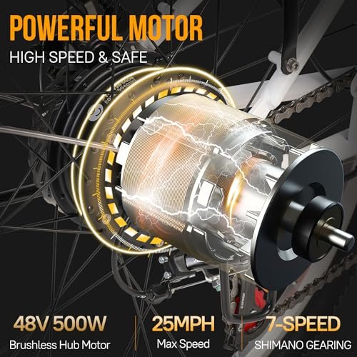Electric Bike for Adults, 26″ Ebikes, Peak 750W Electric Cruiser Bike with 48V 14.5Ah/11.6Ah Removable Battery, 25Mph Electric Bicycle w/ 7-Speed & Front Suspension(Fits for 5’2″-6’5″)