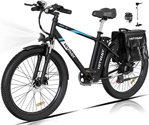 750W Motor and Lithtum Battery: The electric bike adopts a high-speed gear motor, producing a top speed up to 20 MPH. With a 48V 14Ah removable Lithium battery, fully charged in 6 hours. This ebike is capable to achieve 35 miles in full electric mode and 75 miles in pure pedal assist mode. 3 Riding Modes and 7 Gears: The electric bicycle has three modes: Bike Mode, Electric Assist Mode and Pure Electric Mode. The e bike 7-speed transmission is more than enough for your riding needs. The best choice for long-distance travel or daily commuting! 26 3.0 FAT TIRE ELECTRIC BIKE: HITWAY electric bike is made of abrasion-resistant professional tires for better grip, allowing you to ride freely in the mountains and the city to explore nature.HITWAY BIKE is UL2849 certified. Intelligent LCD Display: The HITWAY BK3M has an intelligent LCD display that shows various information such as speed, mileage and battery level in real time. It allows you to activate various functions with simple screen operations to make driving easier. Thoughtful design: The Whole Bike Adopts Lightweight Material Carbon Structural Steel, and the net weight is only 65.04 lbs.The disc brake system, hydraulic suspension fork , hollow Seat, bright headlights and taillights ensure a comfortable driving experience.