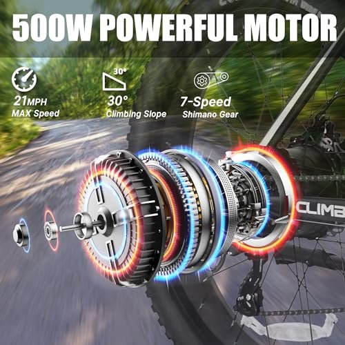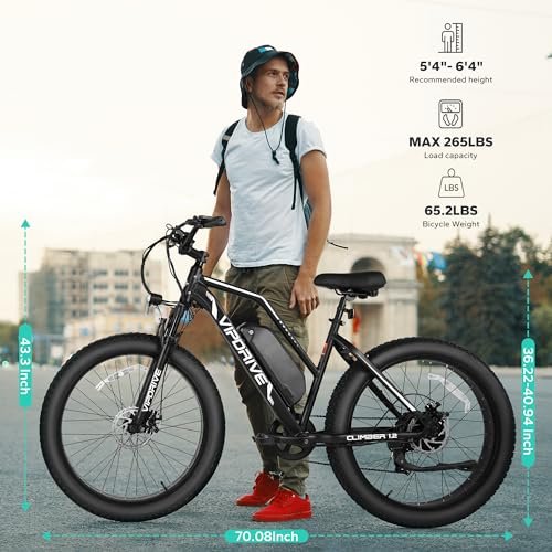 POWERFUL 500W MOTOR Featuring a 500-watt high-speed brushless motor and peak power up to 750W and 21 mph, the Vipdrive Climber electric mountain bike blends off-road performance with power to make your ride as enjoyable as possible. 48V 13AH BATTERY Powered by a 48V 13Ah removable lithium-ion battery, easy to take off and recharge, with a range of 25-50 miles, the e-bike makes your adventures and daily commute more practical and cost-effective. RIDING COMFORTABLY The hydraulic suspension system absorbs shocks and vibrations, providing a smooth and comfortable ride even on rough terrains. The ergonomic design ensures proper body positioning, reducing strain and fatigue during longer rides. With adjustable handlebars and seat height, you can customize the bike to fit your unique preferences and riding style. RIDING SAFELY 26 electric bike fat tire for enhanced stability and traction, combined with a reliable aluminum alloy frame and excellent front and rear disc brakes for precise and instant braking on all terrains. The headlight is bright enough to let you see the road ahead when riding at night. RIDING PROFESSIONAL Built-in 3 riding modes, easily switched by buttons, for different riding needs, the electric bike is suitable for riders of all skill levels. The LCD display screen shows you all the key information and the status of the bike clearly, including current operation mode, speed, pedal assist level, battery capacity, etc. QUALITY SERVICE The Vipdrive e-bike comes 85% pre-assembled. You can watch the installation video to complete the remaining assembly. We offer you 1 year and 24-hour online service and technical support!