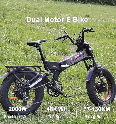 Electric Bike for Adults, LANKELEISI X3000 MAX Folding Dual Motor 2000W E Bike, 30MPH 48V 20Ah Removable Samsung Battery 7 Speed 20″*4.0″ Fat Tire Electric Bicycle MTB