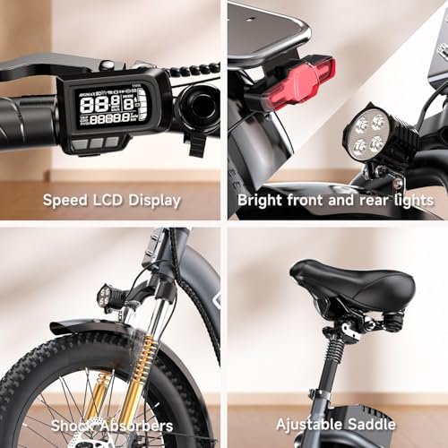 :This electric bike is powered by 750W(Peak 1000W) brushless motor, easily reach a top speed of 30 MPH. With strong driving force and climbing hills ability, climbing 30 slopes, can conquer various terrains such as beaches, mountains, snow, city streets.If you like thrills and challenges, you can also ride this mountain Ebike for a non-stop adventure :Not only the excellent motor but also an upgraded battery equipped. The 48V 15Ah lithium-ion battery covers a range of 40-80 miles per full charge. The removable battery design makes charging more convenient. Dustproof and dampproof, guarantee the safety and life of the battery. Effortlessly cruise, exercise, or commute seamlessly with this long range e-bike. & :The ebikes features Seat and Front Fork Dual Suspension,absorb any bumps or shocks encountered on the road,providing a smooth and comfortable ride.Dual Disc Brakes enables the ebike to stop quickly and smoothly,shortening the braking distance even on a wet road.In combination with 7-speed gear,discover more flexibility of quick climbing response and experience the ultimate electric mountain bike riding experience -:The KEBIKO electric bike is designed foldable. With a folded size of 40.2*17.7*31.5inches(102*45*80CM), weight only 65 LBS, the e-bike can be easily folded and stored in a car trunk or easily transported on the subway, really space saving and portable & : KEBIKO E-Bicycles comes with a USB charging port for cell phone charging.With 3 Riding Modes(Pure electric mode, Pedal assist mode,Classic bike mode) and 5 Pedal Assist Levels(PAS) for your choice,effortlessly switch between throttle and pedal assistance to match your diverse riding moods.The LCD display shows real time speed, battery power,pedal assist levels, mileage and more,easy for you to track your rides in day and night :The city commuter ebike already comes 90% pre-assembled. Installation video is attached to our product page. We provide 12 months service for the motor, battery, charger and controller. Let us know if you have any questions. Please keep the original package for a while