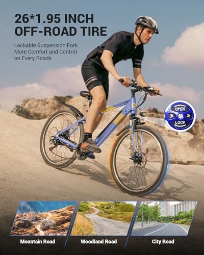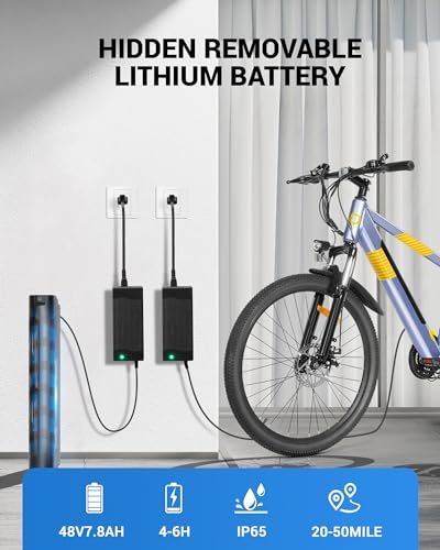 Invisible Weld Technology: The MULTIJOY electric bike frame uses invisible welding technology. This revolutionary welding process reduces loose joints and improves structural integrity while providing fine-tuned welds that are aesthetically pleasing and strong. The clean and cleverly integrated hidden battery and non-marking frame create a sleek, streamlined silhouette that is not typical of electric bikes. Peak 700W Motor: The electric bike for adults is equipped with a 500W(Peak 700W) high-speed brushless motor, which provides strong climbing ability and smooth acceleration. The torque can reach up to 70NM, allowing for faster acceleration, with a maximum speed of up to 22mph. Removable Hidden Battery: With a 48V 7.8AH Hidden lithium battery, Up to 50 Miles in PAS (Pedal Assist System) mode. A stylish, proprietary removable hidden battery makes the ebike look sleeker and cleaner for adults. It is very convenient to remove the battery. You can be pushed in and out easily with one hand. The smaller size than traditional external batteries also makes it easy to carry. Riding Comfortably and Handily The 26 puncture-resistant tires are for greater durability. A high-strength front fork suspension, 21-speed gears, dual fenders, colorful LCD, and front and rear mechanical disc brakes can take your riding more comfort, make your e-bike adapted to complex road conditions, and keep you safe. Excellent Riding Performance: The colorful LCD screen shows the gear position, speed, and mileage in detail, making your riding more intelligent. The lightweight aluminum Frame makes the electric mountain bike lightweight yet very sturdy. With the 21-speed transmission system, you can choose any speed according to your needs.The electric bike has obtained UL2849 certification. Note: Please reserve the original package for some time in case of any issues with the e-bike return. All electronic products in our store have obtained UL2849 certification, please be at ease to purchase!