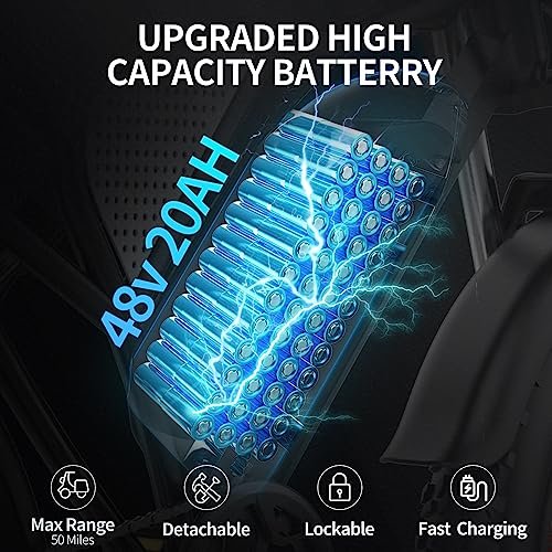 High-Speed Motor & Removable Battery: Our electric bike is equipped with a powerful 1500 W motor that delivers excellent performance, and a removable 48 V 20 Ah battery that provides a long-lasting riding experience Puncture-Resistant Fat Tires: The 20 x4 fat tires are designed to handle any terrain, including rough roads and off-road adventures, while also providing puncture resistance Shamano 7-Speed & F/R Shock Absorber: Our electric bike is fitted with a Shamano 7-speed transmission system that allows you to adjust your speed according to your needs. The F/R shock absorber also ensures a smooth and comfortable ride 3 Riding Modes & Long Distance: Our electric bike has three different riding modes pure electric, pedal-assist, and manual providing a range of options to match your needs. With a long battery life, you can travel up to 50 miles on a single charge Complete with Phone Holder and Storage Box: Our electric bike comes with a 7.2 phone holder (18.5 8.5 cm/7.3 3.4 inch) and a spacious storage box (22x14x11 cm/8.6 5.5 4.3 inch), providing added convenience for your riding experience