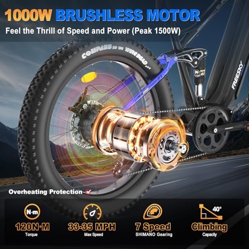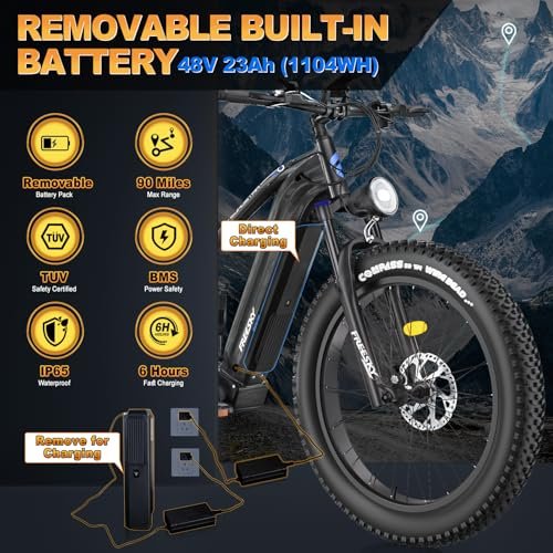 Peak 1500W Motor & 35 MPH Top Speed: FREESKY Eurostar Ultra electric bike adopts 1000W rear hub brushless motor (Peak 1500W). The Max 120 N.m torque offers a strong climbing power (40 Max). The high-performance motor allows this e-bike to reach a top speed of 33-35 MPH in pedal assist mode, and 20 MPH in throttle mode 48V 23Ah Removable Battery & 90 Miles Max Range: Waterproof hidden battery design, 4-6 hours fast charging with 54.6V 3A charger. Which can achieve 45-90 miles mileage by pedal assist mode. (Note: the range varies according to road condition, riding mode, weather, rider s weight etc.) UL2849-certified Battery Full Suspension System: FREESKY Eurostar Ultra full suspension electric mountain bike is equipped with a lockable hydraulic front suspension fork and rear shock absorber that allows you to explore the cityscape while minimizing bumps in the ride, provide you a very comfortable riding experience even on rough roads 4-Piston Hydraulic Disc Brake: Features more sensitive 4-piston hydraulic disc brake with larger and thicker brake pads and rotors (180 mm), which ensure quick response times, greatly shortens braking distance and improve your safety while riding. Whether it s an uneven surface or a gravelly trail, you could enjoy a silky smooth ride LCD Intelligent Display & Upgraded NFC System: FREESKY Eurostar Ultra upgraded HD colorful display helps to easily monitor battery power, mileage, speed and riding mode, giving you a smarter riding experience. NFC cards make it more convenient for you to lock and startup your ebike 5 Riding Modes & 26 *4.0 Fat Tire: Electric Mode; Pedal Assist Mode; Cruise Mode; Manual Mode; Walking Mode. Easily switch between modes to suit your needs and mood, ensuring a smooth journey every time. 800 lumens headlight, reflectors on spoke and horn design to ensuer your safety when cycling at night. 26 x 4 fat tires bring more comfortable experience Easy Installation & Professional Support: Each FREESKY ebike is delivered 85% pre-installed and the remaining steps can be easily completed according to the instructions or videos on our product page. Our professional customer service team is available all day to address any questions or concerns NOTICE: In order to comply with the policies of most regions, Eurostar Ultra comes with a locked controller. The max throttle speed is 20 MPH, If you want to achieve a higher throttle speed, we have unlocked controllers available for purchase