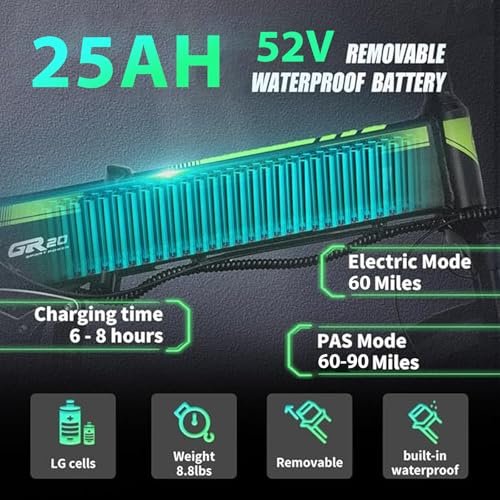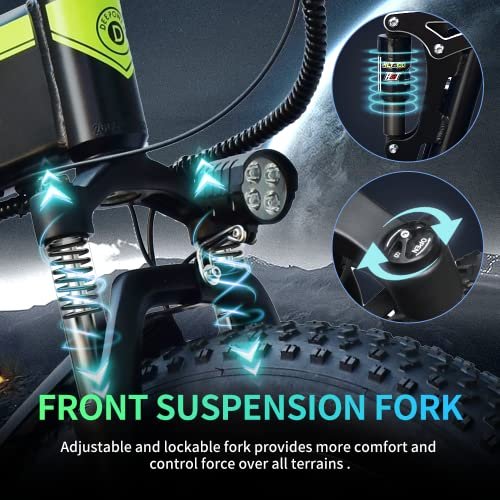 2000W POWERFUL MOTOR Equipped with powerful 2000W high speed geared motor, High transmission efficiency, low noise, fast dynamic response, 60-75NM torque,top speed can reach 35 MPH. 52V 25Ah REMOVABLE BATTERY Ebike is equipped with removable & lockable batteries for different charging needs and safe storage. Maximum range of 28-31 miles per charge in 4-6 hours. DUAL SHOCK ABSORBERS & DISC BRAKES Lockable shock forks + hydraulic shock provide reliable cushioning for H20 electric bike, making for a smoother ride. Front and rear mechanical disc brakes have good and stable braking effect, allowing you to stop quickly and smoothly even when riding at high speed. 20 x4 FAT TIRES Chaoyang tires, superior flexibility and smoothness, sturdy and durable, suitable for all kinds of roads, you can ride freely on the beach, mountain, snow and city, creating unlimited fun for you. 3 RIDING MODES & FOLDABLE Pedal mode, pure electric mode and pedal assist mode (7 gears) provide you with power for long commutes. Foldable function helps you easily take the bike to your room or put it in the trunk of your car. IDOTATA H20Pro Electric Bike for Adult,2000W Motor Foldable Electric Bicycle,20 /26 Fat Tire Ebike,52V 25AH Removable Battery,Max Speed 35MPH,7-Speed Gears,Dual Shock Absorbers Mountain Ebikes