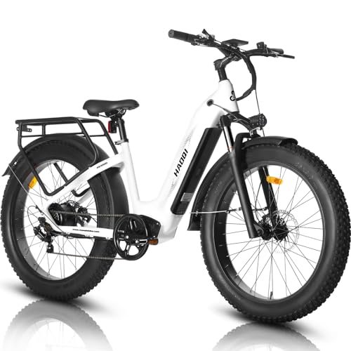 750W MOTOR WITH 28+SPEED: HAOQI ebike for adults has 750W high speed customized brushless geared motor, the strong power allows riders easily to win 35 slopes. 28+MPH by pedal; 20 MPH by throttle. Electric mountain bike takes you to anywhere you desire freely. 20AH LG BATTERY: With a 48V/20AH LG ebike battery, our e bike for adults electric can cover a range of 40-75+ miles per full charge, making it perfect for longer rides. WIDE APPLICATION: Our 26 X4 fat tire is great for mountains, cities, sand, and snow, making it perfect companion for outdoor adventures. PREMIUM QUALITY: Our adult electric bicycle features 2 front suspension forks with superior shock removal, a 7-Speed shifter, adjustable seat, and high brightness front light, providing a comfortable and energizing riding experience. EASY INSTALLATION: Our package comes with a 90% pre-assembled electric bike, basic bike components, assembling accessories, and free accessories, making it easy to assemble and get started on your ride. WARRANTY & CUSTOMER SUPPORT: All HAOQI electric bikes come with a 2-year all-inclusive warranty against all manufacturing defects. We also offer excellent customer support and have local dealers available for test rides, consultations, and repairs. If you have any questions, please contact us without hesitation.