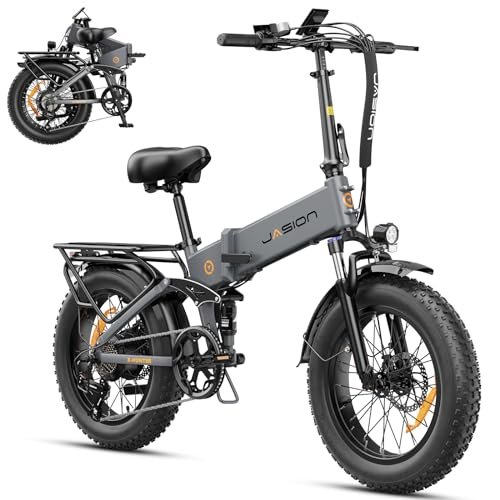 The 750W PEAK 1400W Motor-The X-Hunter ebike has a brushless motor with a peak power of 1400W. The powerful motor allows you to easily reach a top speed of 30 MPH, enough to explore all kinds of rough terrain while cycling outdoors, and easily conquer various terrains such as beaches, mountains, snow, and city streets Upgraded Battery Not only the excellent motor but also an upgraded battery equipped, the 48v 13Ah lithium-ion battery covers a range of 40-54 miles per full charge. The removable battery design makes charging more convenient. dustproof and dampproof, guarantee the safety and life of the battery. Full Suspension System-The Jasion X-Hunter electric bike is equipped with a dual suspension design.The front suspension is an air suspension that absorbs bumps with 80 mm of travel, meaning that there is enough comfortable space on bumpy or rough roads. The rear suspension can absorb most of the pressure, making sure more comfortable while cycling outdoors. Foldable Design The foldable e bike is convenient for you to take anywhere. With a folded size of 33 * 16 * 30 inches and weighs only 71 pounds. It can be easily folded and stored in the trunk of a car or subway, making it the best commuting and travel companion. Humanization Riding This adult electric bicycle has an intuitive LCD display, showing the speed, battery charge, pedal assist level, and travel distance. with front and rear mechanical disc brakes, offering peace of mind while riding. The bright headlight and adjustable rear light make you see and be seen at night. Customize your ride performance with 3 riding modes and 7-speed.