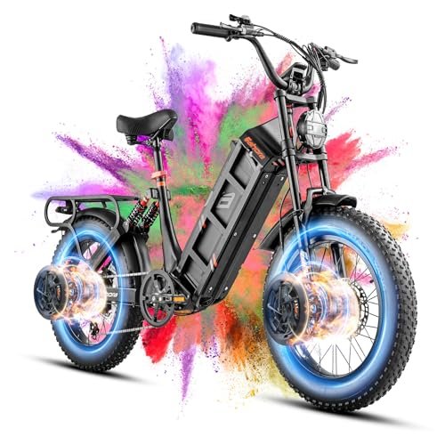 Juliet [2024 Upgrded] Electric Bike for Adults Peak 1700W/2000W 60AH Dual Motor Ebike 100-200Miles Long Range Electric Bike 20” Fat Tire Full Suspension E Bike with APP Control Display