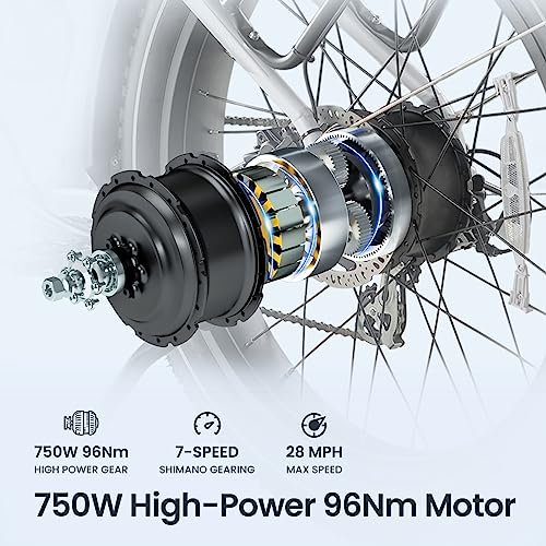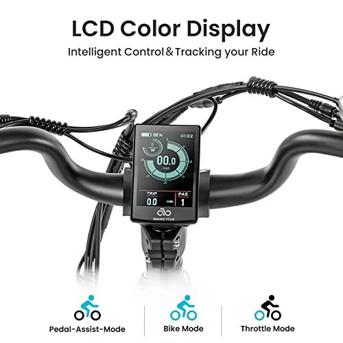 52V 20A Large-Capacity Battery : 4-6 hours fast charger and 750Wh total battery capacity. The relatively low current of 52V 20Ah batteries help reduce the risk of overheating the battery system, which ensure a long life span and high performance. Our electric bike longest range is over 80 miles per charge on pedal-assist mode. 750W Torque96N.m Motor: Our e bike for adult climb easier and start faster. Ebike has 750W and 96N.m of torque at your disposal, the high-speed brushless gear hub motor can help you conquer the most rugged terrains like never before. 7 Levels Pedal Assist: With throttle on demand and pedal assist, fat tire bike can get anywhere you want to go! The throttle is there when you need it. And the 7 degrees of pedal assist let you regulate your energy expenditure so you can always reach the top! Tektro 180mm Hydraulic Disc Brakes: The Tektro 180mm hydraulic disc brakes provide ample stopping power even in the harshest condition, super sensitive brakes make even steep slopes a piece of cake Color LCD Display: This electric bicycle has 3.5-inch Full Color Screen. Calculate how many miles you ride. Pedal assistance power adjustment. It can charge your dying cell phone.