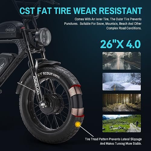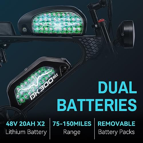 DK-300-MAX configuration The front and rear 1200W motors form a 2400W dual motor, which can switch between dual drive or single drive at any time, providing powerful power and torque. DK-300-MAX Battery Equipped with two sets of 48V 20AH batteries to form a 48V 40AH battery, providing 60 miles of pure electric cruising range, 120 miles of pedal assist, and 35 miles per hour of pure electric cruising range. DK-300-MAX Safety It adopts MEELOED brand front and rear four-piston brakes to maximize braking when driving at high speeds. The 20*40 fat tires provide better grip and shorter braking distance. DK-300-MAX Shock Absorber The front uses a double-barrel hydraulic spring for shock absorption and is adjustable, and the rear uses an air compression shock absorber. This set of shock absorbers can cope with various road bumps and improve ride comfort. DK-300-MAX Function The meter can provide a type-c 5V1A charging port, waterproof grade IP67, can also display the gear position, mileage, and supports Bluetooth 4.0. MEELOD brand after-sales service Please keep the outer packaging before returning the product, and then contact us to return it. The service email is: shanlingyuan@meelod.com DK-300-PRO/DK-300-MAX Introduction: Experience the ultimate thrill of riding with the MEELOD Fat Tire Electric Bike. This powerful electric bike is designed for adults looking for high performance and adventure. With its dual motor system, available in 2400w/1200w dual motor or single motor options, you ll enjoy unparalleled power and speed. With a top speed of 35 mph, this e-bike lets you conquer any road or trail with ease. Whether you re commuting to get off work or exploring off-road terrain, the MEELOD Fat Tire Electric Bike delivers an exciting and adrenaline-pumping experience. Choose from 48v40ah or 48v30ah dual battery options to extend your riding range. Say goodbye to range anxiety and enjoy longer rides without worrying about running out of battery.